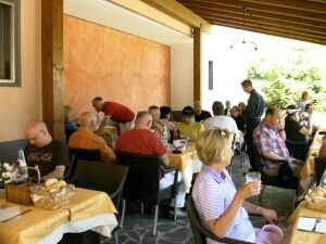Über die SS-12 (strada statale 12 = Etschtalstrasse) erreichte die Kolonne schliesslich vollkommen problemlos Mezzocorona, Mezzolombardo und Fai della Paganella. Dort warteten bereits weitere Teams aus Deutschland und aus Frankreich auf die Gruppe der SLK-Risti. Die Hotelcrew rund um "Mamma Lucia" hielt einen kühlen Begrüssungsschluck bereit.