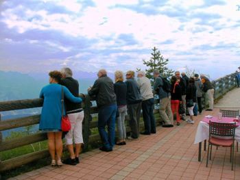 Am Donnerstagmorgen startete die Gruppe und nahm die 25 Kilometer lange Passfahrt auf den Hausberg der Trentiner unter die Räder. Auf der Passhöhe befindet sich ein Rifugio, auf dessen windgeschützter Sonnenterrasse die Freunde in der Sonne sassen, einen "caffè" tranken und die Natur genossen.