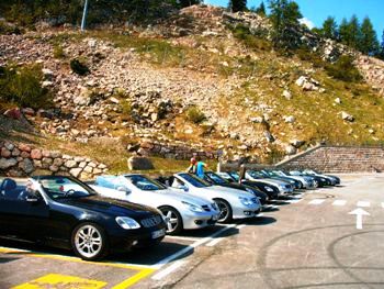 Nach dem gemeinsamen Frühstück brachen die Teams in Richtung Brenner-Passhöhe auf, tankten unterwegs noch die Roadster preisgünstig auf, und sammelten sich auf der italienischen Seite des Brennerpasses. Nach einer kurzen Rast ging es dann endlich in Richtung des Tourhotels im Trentino weiter.