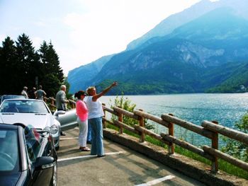 Am frühen Freitagmorgen wurde das Tourhighlight in Angriff genommen: Die Gruppe rollte gemeinsam durch das Etschtal und kletterte hinter Trento hinauf in die Bergwelt des Veneto. An einem malerischen Bergsee wurden die Teams bereits erwartet. Der Restaurantchef hatte eine typische italienische Jause vorbereitet, und von der Terrasse blickten die Tourteilnehmer auf den Bergsee.