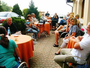Kurvenreich ging es anschliessend weiter bis ins Val di Non und die Serpentinen hinauf zum Tourhotel. Auf der Terrasse trafen sich die Teilnehmer und erfrischten sich zum bevorstehenden abendlichen Highlight: Das gemeinsame Abendessen vom Hotelkoch Maurizio.