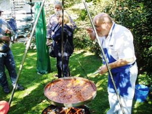 An diesem wunderschönen sonnigen Herbsttag fanden 15 Teams den Weg in die Eifel. Die weiteste Anreise hatte Roland vom Elbestrand in Sachsen in Kauf genommen. Er traf schon am Donnerstagabend im Nationalpark Eifel ein und reiste am Sonntagmittag wieder nach Hause. Die anderen Teams kamen vom Niederrhein, aus dem Sauerland, der Kölner Bucht, der Voreifel, dem Moselufer und aus Hessen. Gegen 13:00 Uhr entzündete Peter das Feuer und füllte die grosse Schwenkpfanne zum ersten Mal mit dem köstlichen Chili-con-Carne nach einem mexikanischen Rezept; insgesamt wurde heute der Inhalt von drei Pfannen vertilgt. Es blieb nicht ein einziger Löffel übrig!